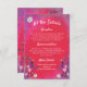 Vibrant, hand drawn raspberry pink design with wildflowers - Wedding RSVP card vertical