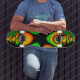 The folks at Zazzle have really done their research on skate decks. The board itself is of high quality, with nice curve. Printing is good; sharp, colour is vibrant. Haven't had an opportunity to see how well it will stand up to skating, but I have high hopes for it.