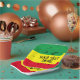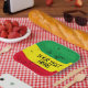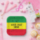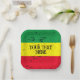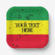 Rastafari flag reggae theme custom paper plates. Custom disposable party supplies with Rasta flag and your distressed text. Vintage typography template. Fun for Birthday party, BBQ, celebrations, wedding and more. Personalized table decor.