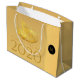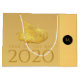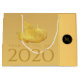Design élégant avec papier doré coupé d'un rat avec des fruits (+ le même papier coupé en gris formant ombre portée. Conception sur grand sac cadeau avec Large 2020, Année du Rat et monogramme sur noir rond + même image arrière - plan dans le dos. Vous pouvez facilement modifier le texte (police, couleur, taille et position) en cliquant sur le bouton personnaliser. Carte de voeux correspondante et bien plus encore.