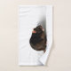 It was advertised as NAVY blue and the color sent was greenish blue. I am disappointed in this product. Quality and printing are great as are all my other orders. As you can see in picture the tea towel on right is perfect, hand towel not so much! Print was awesome and just as ordered