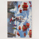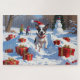 Rat Terrier Running in Snow with Christmas Hat Jigsaw Puzzle