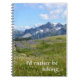 Notebook/journal featuring photo taken at Mount Rainier and text "I'd rather be hiking..."