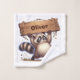 Cette serviette de toilette amusante et personnalisée pour enfants présente un mignon raton laveur grassouillet tenant une pancarte de nom en bois géante, Avec une queue touffue écartée pour l'équilibre et un pied levé à mi-pas, ce design adorable est parfait pour la personnalisation.
