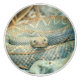 A ceramic knob featuring a photo of a rattlesnake.