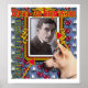 In the original design on this Poster, Zoe, the bilingual dog, identifies a favorite composer, in English and French. A framed photograph of Maurice Ravel is pointed to by a photo of Zoe, all against a blue background wallpaper original illustration of red cherries, green leaves and white sailboats.