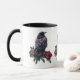 A coffee cup or mug, or any hot or cold beverage, with a beautiful raven and roses. A pretty kind of mystical magical cup.