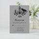 A black raven and crystal chandelier decorates this RSVP on a grey linen background. The back is further decorated with a spider damask pattern, giving it an eerie Halloween feeling. This is the coordinating RSVP for the Raven and Spider Damask Grey Linen Wedding Invitation. It is shown on the basic paper; however, I recommend the weight and texture of the linen paper.