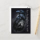 Raven and wolf that howls at the moon postcard