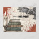 Personalize this Halloween inspired postcard for Halloween. Raven in flight appears in the upper right-hand corner and appears to hover over a lit candle with antique books. Enjoy spooky season!