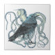 Dreamlike surreal raven dreaming of octopus. Lush blues and sleek grey blacks. Unique dreamlike quality.
