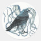 Here is a strange juxstaposition. A raven would never be entangled by an octopus as one is on land and one is in the sea. Perhaps it is the raven's nightmare or dream. Gothic style.