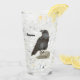 A Raven perched on stone at the Tower of London adorns this customizable glass!