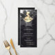 This dark and modern gothic wedding menu features a pair of ravens in front of the golden full moon on a smokey dark black background. The reverse side features a black background. Personalize it for your needs. You can find matching products at my store.