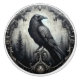 This drawer or door knob has a raven with a dark ornate frame and forest trees in the background.