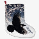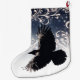 Featuring a majestic raven soaring against a dark blue night sky background with graceful wintery white swirls, this holiday stocking design brings a magical vibe to your Winter solstice celebrations.