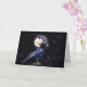A raven silhouetted against a full moon with bats, a charming and festive Happy Halloween card, designed in a folk art style.