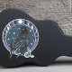 Tribal raven sitting in a circle of stars and moon phases all drawn an art nouveau style in a backdrop of blues and purple