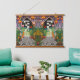 The polyester fabric displayed many wrinkles and several sharp creases throughout. At the bottom of the tapestry, I noticed a bulge in the fabric because it was not pulled tight enough before being connected to the wooden boards. It took me over an hour to spay water on the tapestry before putting it on an ironing board where I used a warm iron over a polyester cloth to remove the wrinkles and creases in the material. I was able to get out the wrinkles and creases that made that tapestry look as beautiful as its picture.