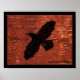 A simple, black silhouette of a Raven (Corvus corax) on a background image of the reddish reverse side (inside) of birch bark. The raven image has been given a slight "rough" or "worn" effect. Add your own text.