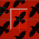 A tiled, simple, black silhouette of a Raven (Corvus corax) on a red background. The raven image has been given a slight "rough" or "worn" effect. You may change the background colour. Feel free to ask me for assistance in resizing the raven image.