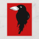 Drawing of a black crow with plump feathers and a large white beak. Seems to be smiling about something.
