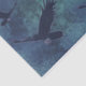 Ravens decoupage tissue paper by Michaeline McDonald features a teal green and blue watercolor background with ravens in flight in a seamless pattern.