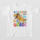 Here's a cute and colourful shirt for your 3rd grader to wear back to school. A gold dinosaur wears a ball cap and sunglasses. The multi colour text says "RAWRING into 3rd GRADE".