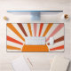 Le design rétro du soleil éclate dans les tons chauds rose, marron, orange. Rayons de soleil orange modernes rétro, soleil matinal géométrique art abstrait.