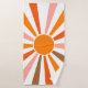 Le design rétro du soleil éclate dans les tons chauds rose, marron, orange. Rayons de soleil orange modernes rétro, soleil matinal géométrique art abstrait.