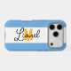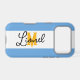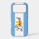 Ce design de coque de téléphone moderne, élégant et coloré peut être facilement modifié et vous permet de le personnaliser en ajoutant votre nom en lettres de monogramme dorées historiques.