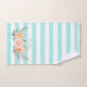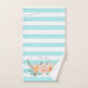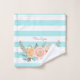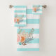 Ajoutez une touche d'élégance féminine à votre décoration avec cet ensemble de serviettes de bain rayées aqua turquoise chic décoré de ranunculus floraux doux pêche et rose. Personnalisez ce magnifique design féminin en ajoutant votre nom.