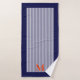 Faites une déclaration dans votre salle de bain avec notre serviette de bain élégante à motif rayé nautique. La combinaison de marine et d'orange ajoute une touche tendance à votre décoration. Personnalisez-la avec votre monogramme familial pour une touche élégante et stylée.Ceci fait le cadeau de vacances personnalisé parfait pour un être cher.