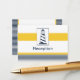 rayures bleu marine et blanc avec bordure jaune et bordure blanche pointillée avec un phare, cartes de mariage nautique Mod Réception. Produits correspondants également disponibles.