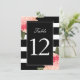 Rayures noires et blanches avec numéros de table aux pivoines - Créé par Colourful Designs Inc. Copyright 2013-2016. Tout le texte peut être modifié.