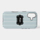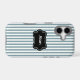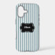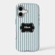 Des rayures verticales gris-vert-bleu font un fond élégant pour cette coque d'iPhone 17. Très net et élégant.