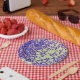 Great accent for an outdoor summer party. Bright colors, vibrant floral design