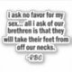 I ask no favour for my six. All I ask of our brethren is that they take their feet off our necks.