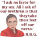 RBG Ruth Bader Ginsburg Quote - All I ask of our brethren is that they take their feet off our necks.