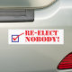 Fed up with politics and the broken government? Choose this bumper sticker to encourage people to take action. "Re-Elect Nobody" to put some fresh faces in congress and the senate, even local elections!