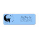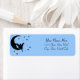A silhouette of a fairy sitting on the moon, surrounded by stars. Edit the text boxes for your name and address. Feel free to change the background colour.