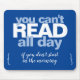 Share your love of reading with this fun modern mouse pad. The phrase "You can't read all day if you don't start in the morning" in stylish typography text appears in shades of blue and white.
