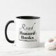 Read written in elegant black font with Banned Books written under it in bold block letters. In the 21st Century we should not be going backwards to a time when books were being banned and burned. Read what you want in a free America! Available in many types and sizes.