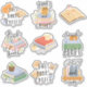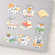 9-sticker pack of books with cats, dogs, coffee, and quotes.