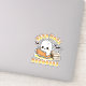 Colourful cute Halloween "Read more boooooks" text design with cute, funny, smiley ghost reading a book decoration