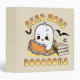 Colourful cute Halloween "Read more boooooks" text design with cute, funny, smiley ghost reading a book decoration