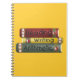 Three books - one red, one green, and one gold - labelled reading writing arithmetic.
