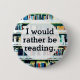I would rather be reading. Ain't that the truth... A colourful digital watercolor painting of a bookshelf--the perfect background for this customizable pin.
