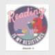 “Reading Is My Resistance” round badge-style sticker features a bold red cardinal lounging with a good book, a warm blanket, a hot drink, and a towering TBR pile. Part of the Cardinal of Resistance series, this purple, mid-century–inspired illustration celebrates the quiet power of reading. A thoughtful gift for readers, writers, librarians, teachers, and book lovers who believe stories open the world. Perfect for laptops, water bottles, journals, e-readers, book carts, and cozy reading nooks.