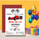 Ready set go red racing car modern 6th birthday invitation